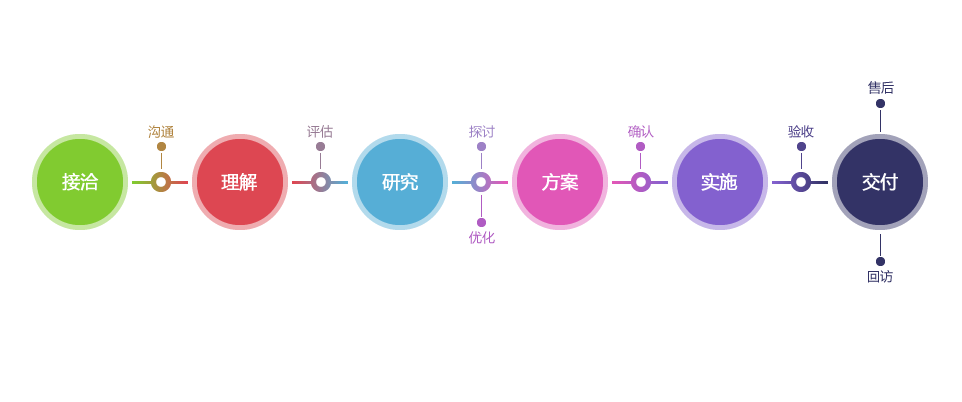 清晰、可視、可持續(xù)改進(jìn)的研發(fā)流程服務(wù),在每個(gè)環(huán)節(jié)我們都秉承著打造高品質(zhì)移動(dòng)互聯(lián)網(wǎng)解決方案的開(kāi)發(fā)理念。